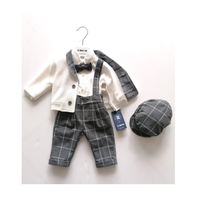 ---pantaloni grigio a quadrettoni in lana+caldo cotone con bretelle