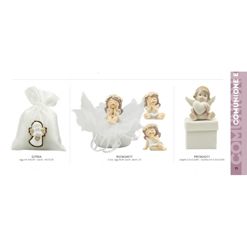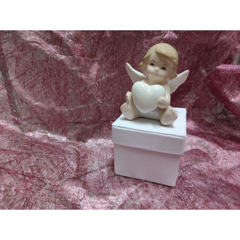 angioletto in porcellana, 5,5x3,5xh6 cm, su scatolina portaconfetti, 5x5,5 cm, ideale come bomboniera per nascita/battesimo e anche per prima comunione
