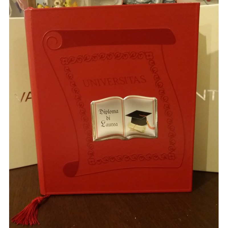 Album laurea in ecopelle rosso con libro in argento VALENTI