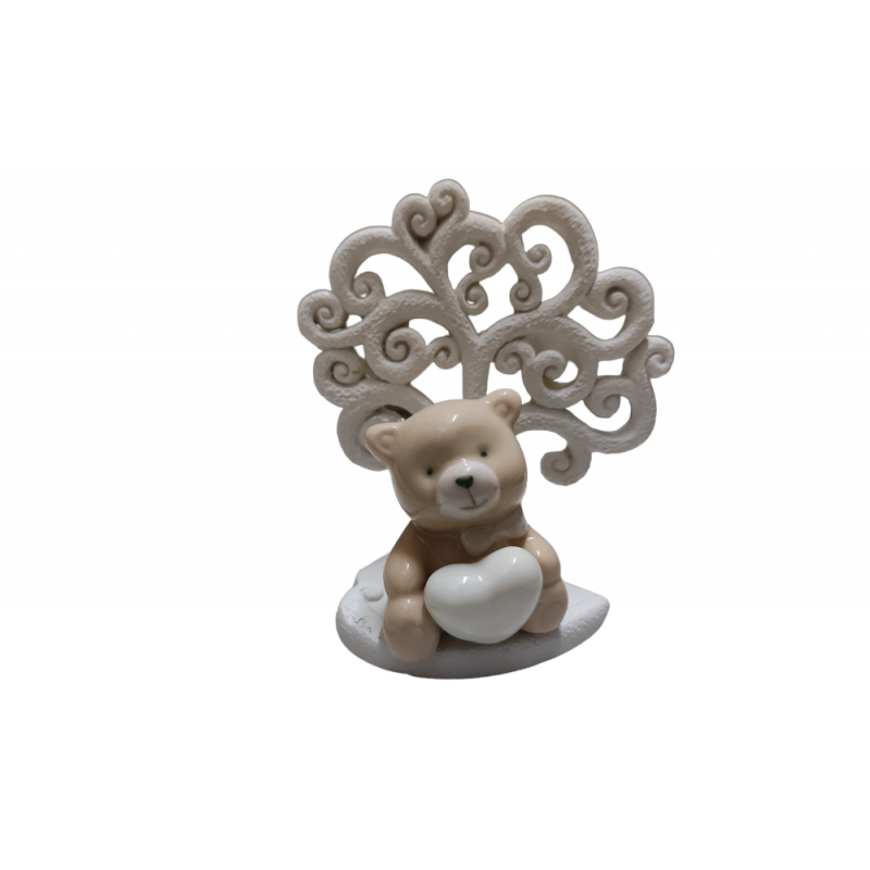 -albero in resina con orsetto in porcellana h9,5 cm