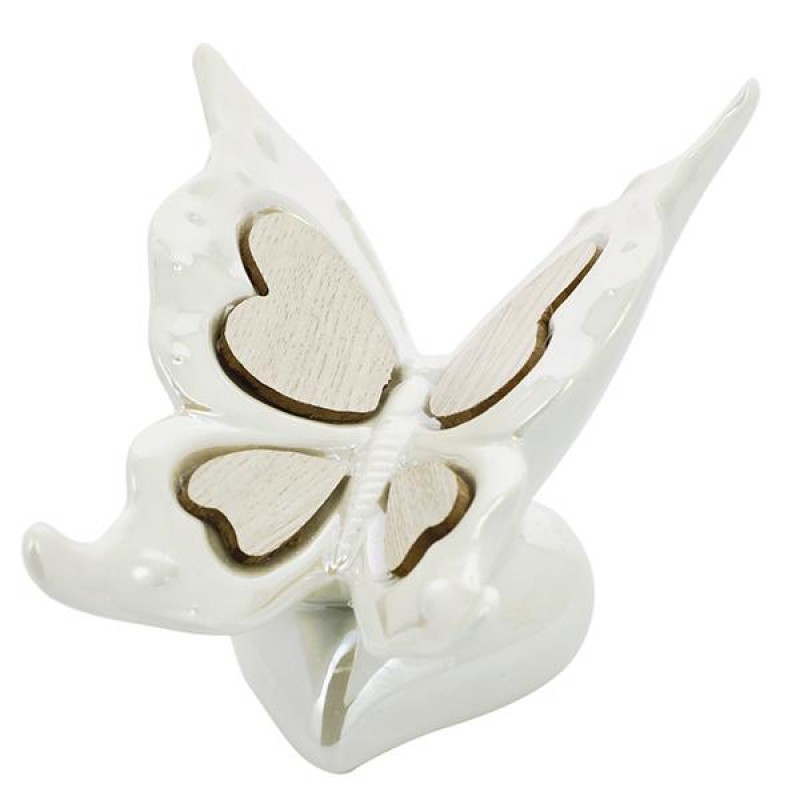 farfalla in porcellana e legno su cuore in porcellana perlata 12x14x12 cm con astuccio coordinato