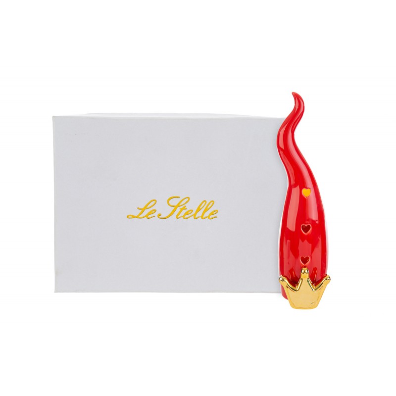 cornetto in porcellana rossa e corona oro con led e astuccio coordinato