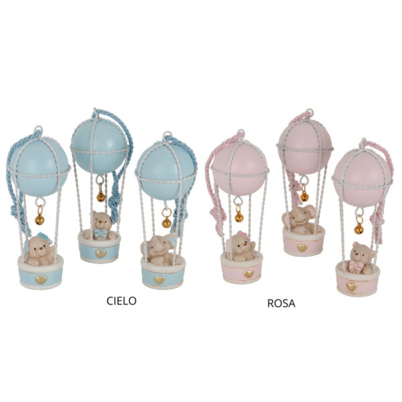 mongolfiera con teneri animaletti assortiti in resina h12 cm