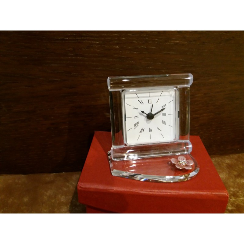 Orologio, h 9x8 cm, con applicazione fiorellino rosa e astuccio coordinato