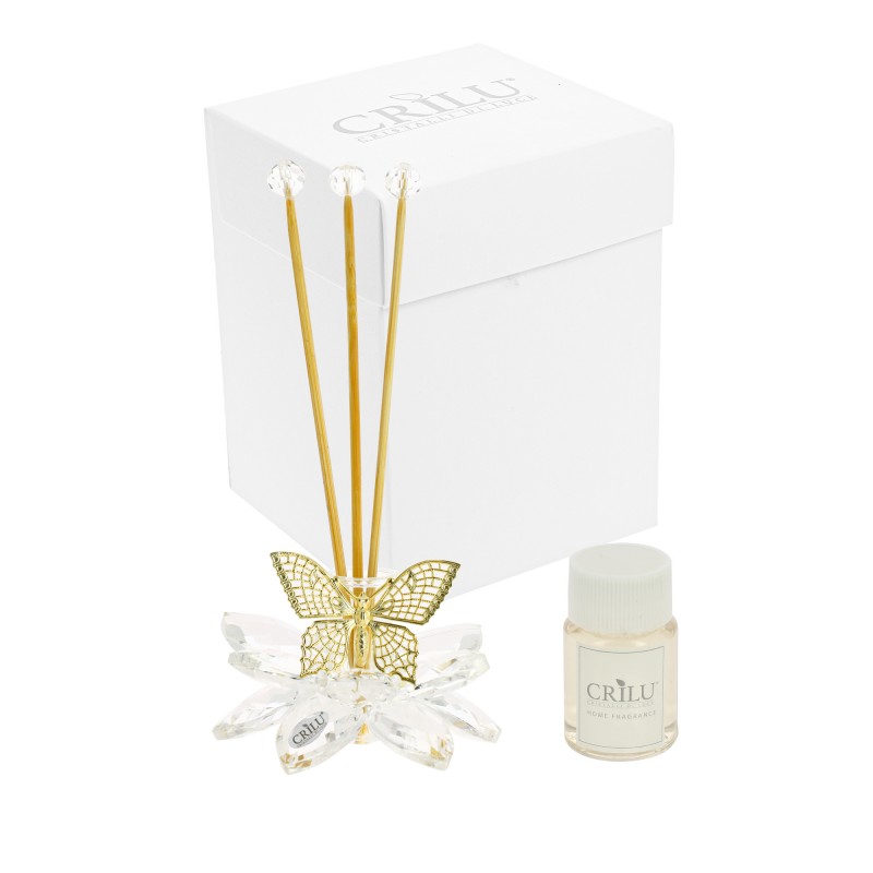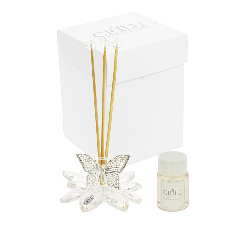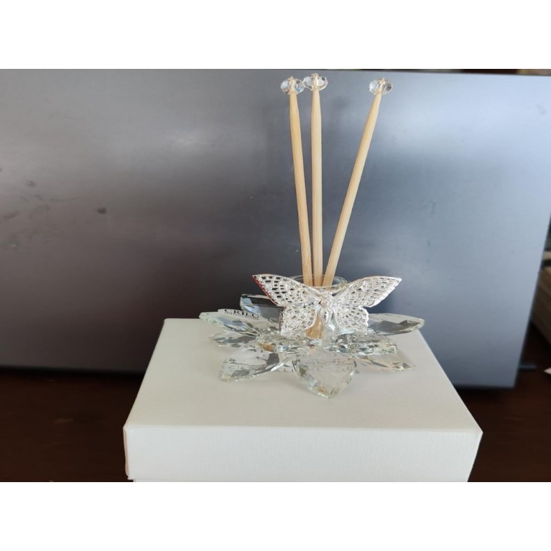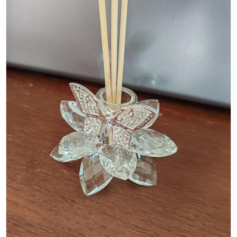 elegante profumatore fiore in cristallo con farfalla argento/oro a scelta