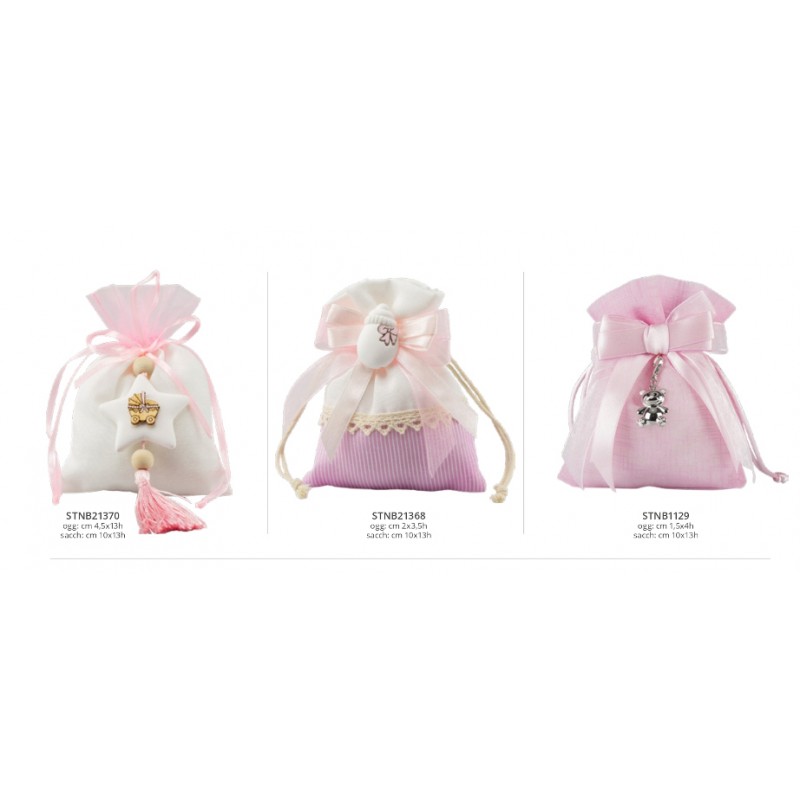 - sacchetto,10x13cm, tipo lino con ciondolo orsetto 1,5x4 cm DISPONIBILE SOLO ROSA