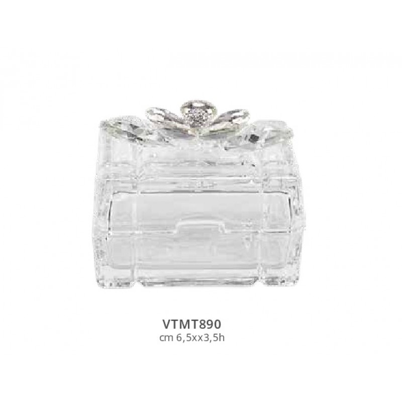 Scatola cubo in vetro con fiore in cristallo , h 3,5 x 6,5 cm, HARMONY
