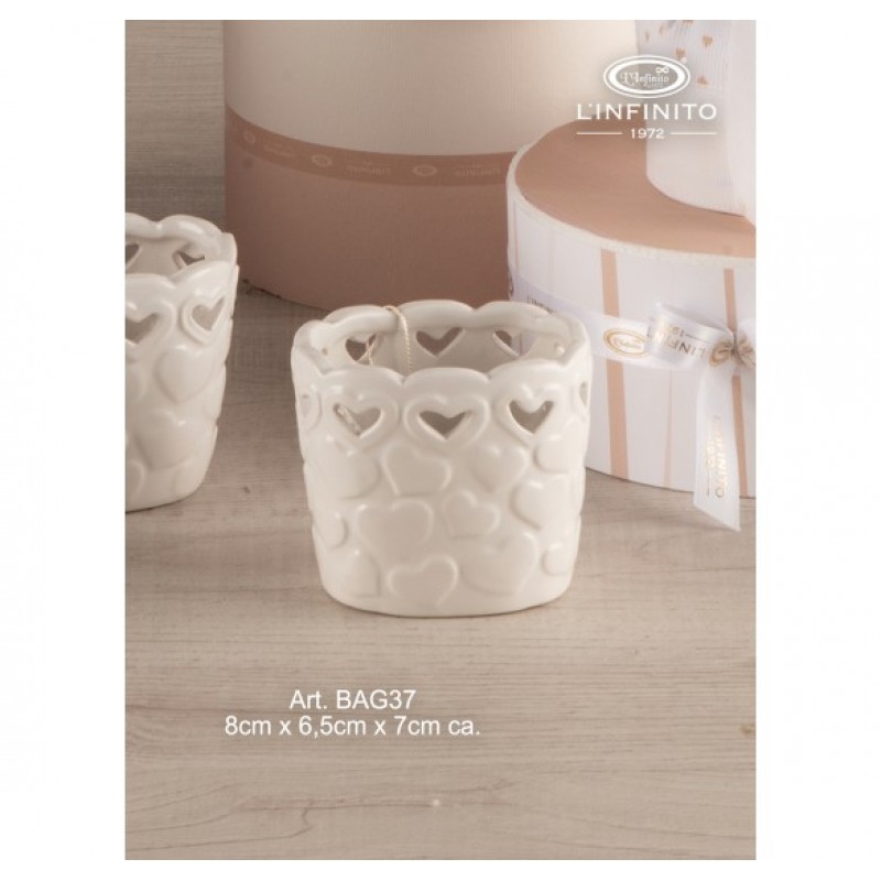 vaso piccolo in ceramica bianca a cuori in rilievo h7x8x6,5 cm con astuccio coordinato