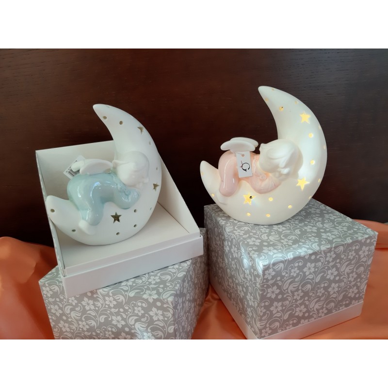 LUNA CON ANGELO IN CERAMICA CON LED E ASTUCCIO COORDINATO
