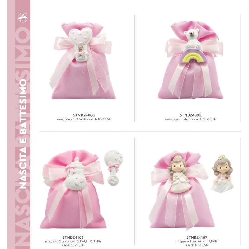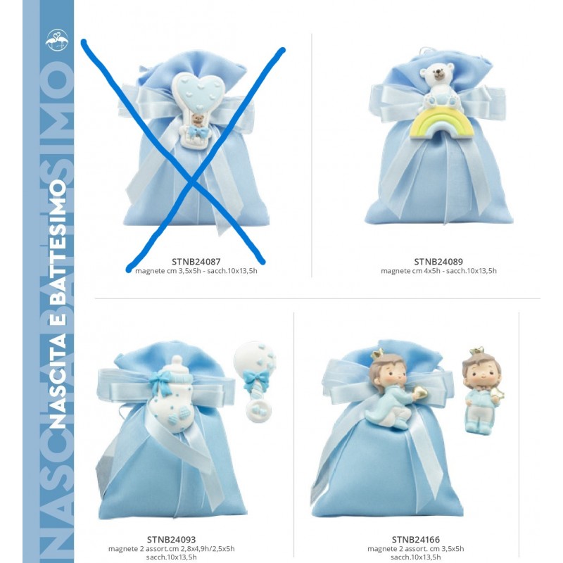 dopo aver ordinato ti contatteremo per conoscere i dati da stampare nei bigliettini e, se sacchetto e nastri abbinati al magnete non ti piacciono, ti manderemo le foto di altre prove confezione cosicchè potrai scegliere quella che ti piace di più!
