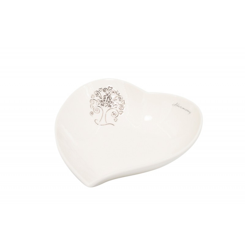 piattino a forma di cuore in porcellana bianca decorata argento h 3,5x16x18 cm con astuccio coordinato