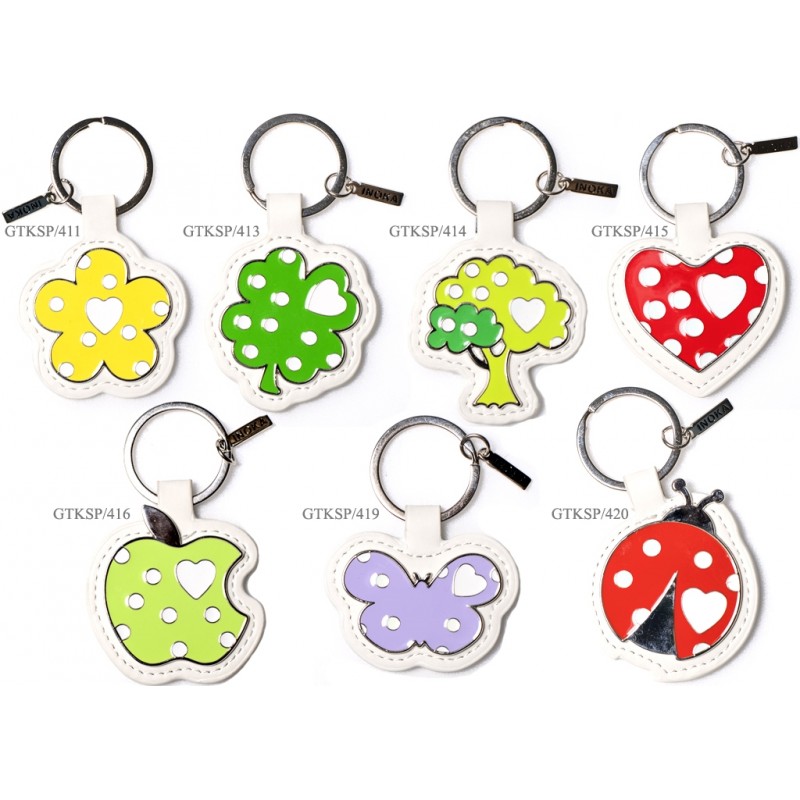 Portachiavi in metallo smaltato ed ecopelle sagomata cm. 9,5 circa
