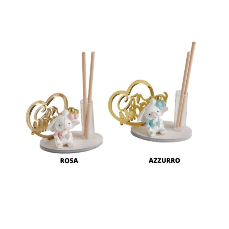 profumatore elefantino in resina su base in legno e scritta "con amore" in plex con fialetta in vetro e bastoncini h7x9 cm