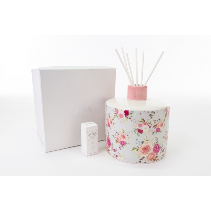 profumatore in porcellana "pink & roses" h 15x14 cm con astuccio coordinato