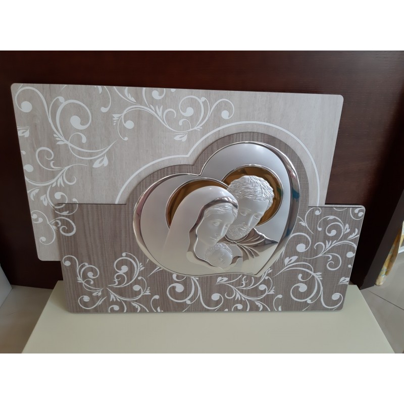 SACRA FAMIGLIA IN ARGENTO SU LEGNO VALENTI 54X76 CM