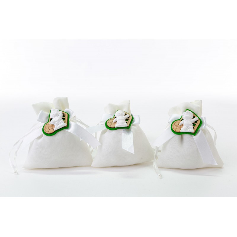 sacchetto in cotone 11,5x9,5 cm con applicazione in legno
