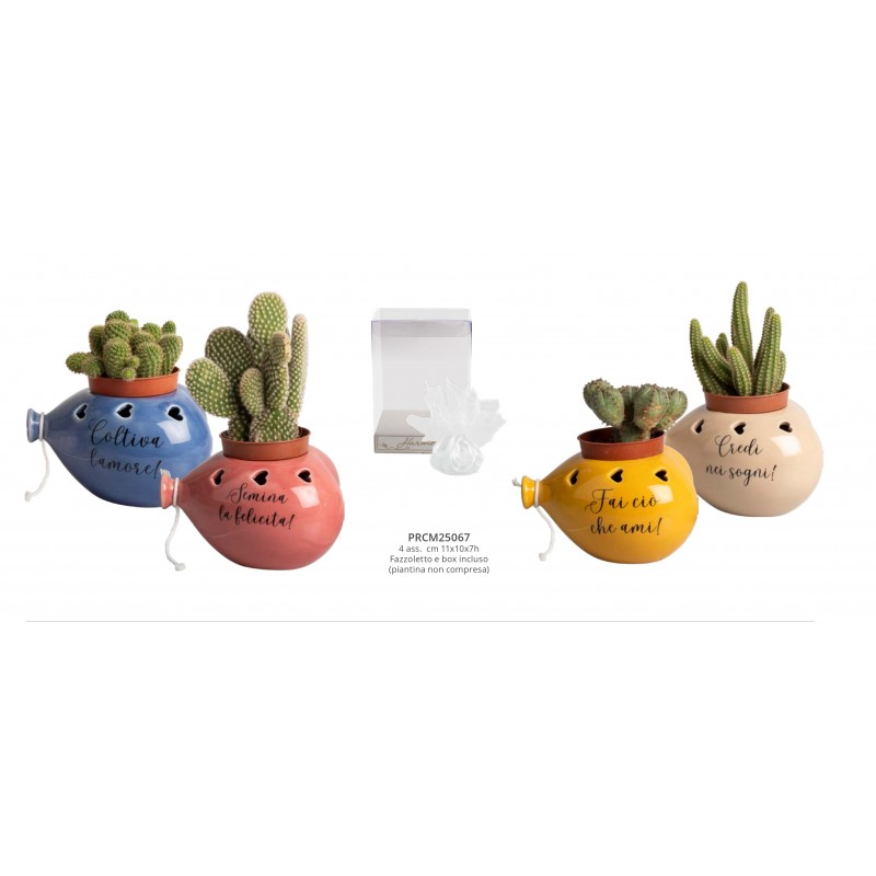 vaso palloncino a forma di cuore in porcellana, h7x11x10 cm, con astuccio in pvc trasparente coordinato (piantina esclusa)